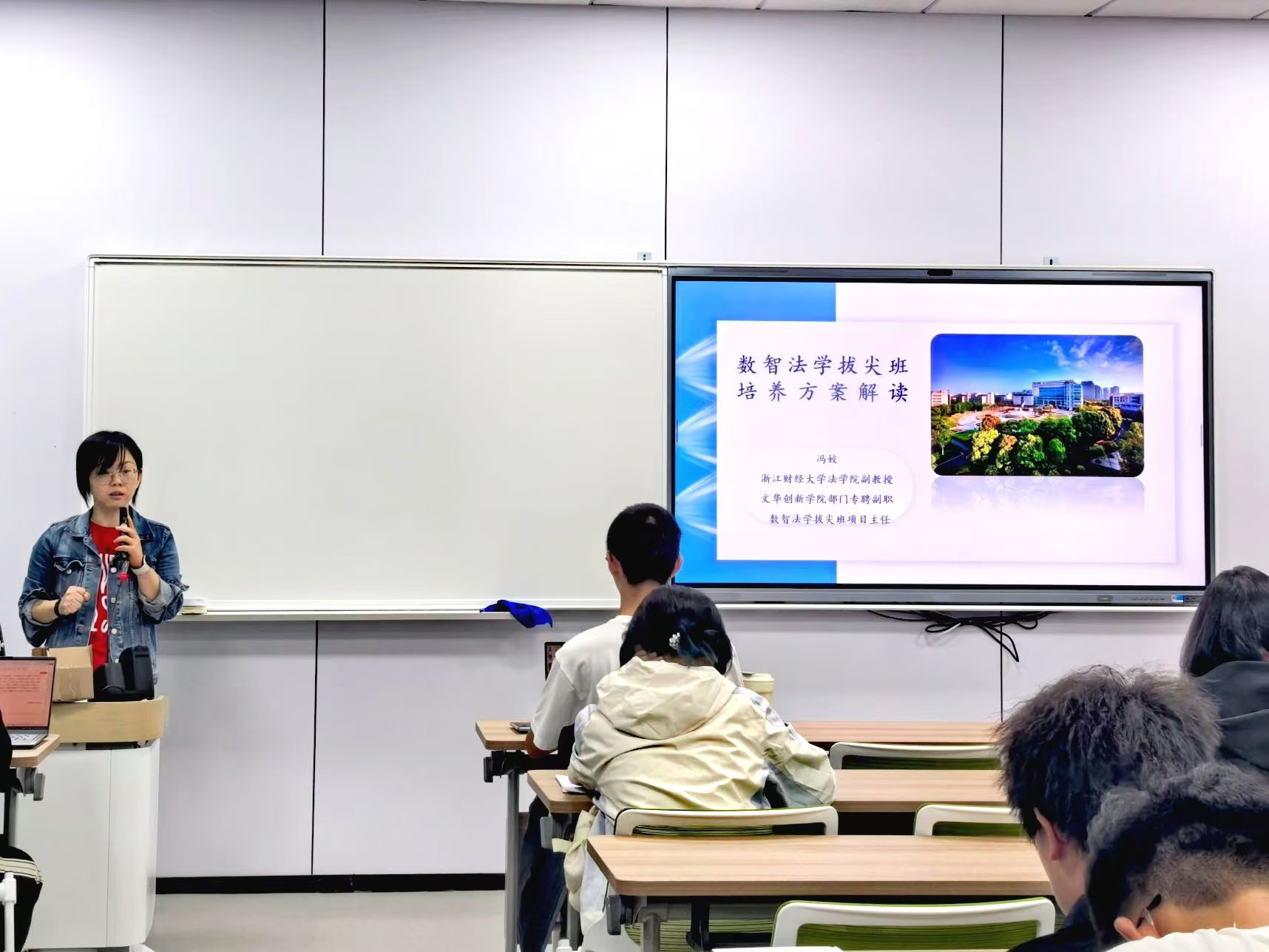 近期,我院连续开展“明目标、建班风、促学风”的三风建设活动,通过项目主任、中层干部进课堂的方式,开展新生学习规范及培养方案解读活动。学校教务处副处长李毅、学院执行院长叶舟、数智会计拔尖班项目主任王会娟、数智法学拔尖班项目主任冯娇参加此次活动。