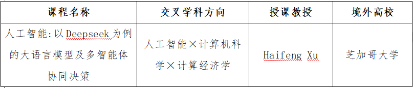 2025年秋季(10月—12月),我院将开设1门人工智能交叉学科精品课程,具体详情如下:
