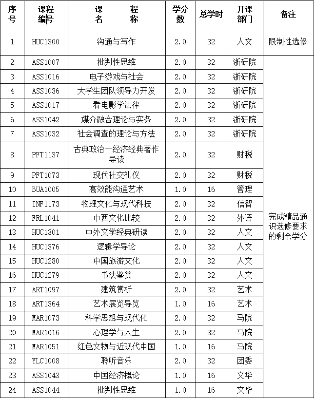 注:1.《中华精神文明十二讲》(HUC1469)是2024级必修课程。