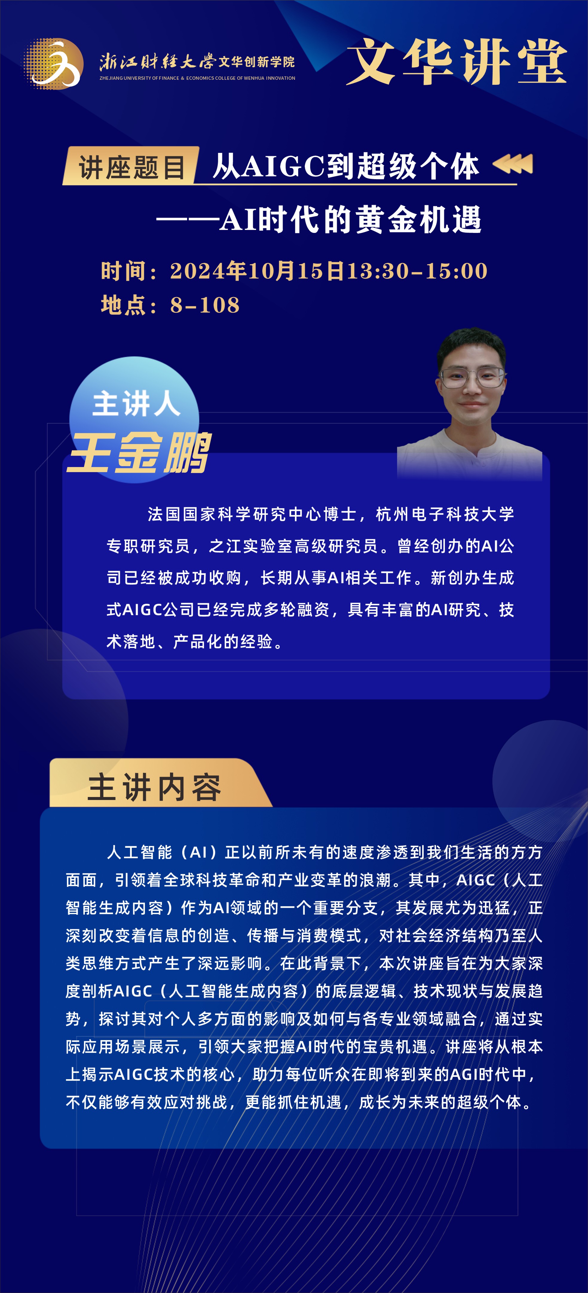 文华讲堂讲座预告:从AIGC到超级个体——AI时代的黄金机遇