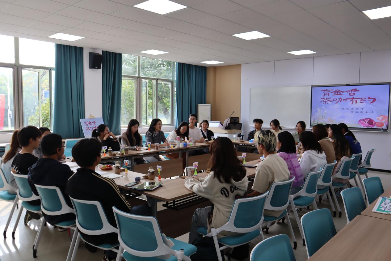 为贯彻落实新财经战略,培育浙财金生,11月4日下午,我院在107教室举办“育金香”茶咖有约活动。学院党委书记沈晓敏、党办主任周衍彤、学办主任池韫在温馨愉快的氛围中与20位2024级新生代表品茶饮、话发展。