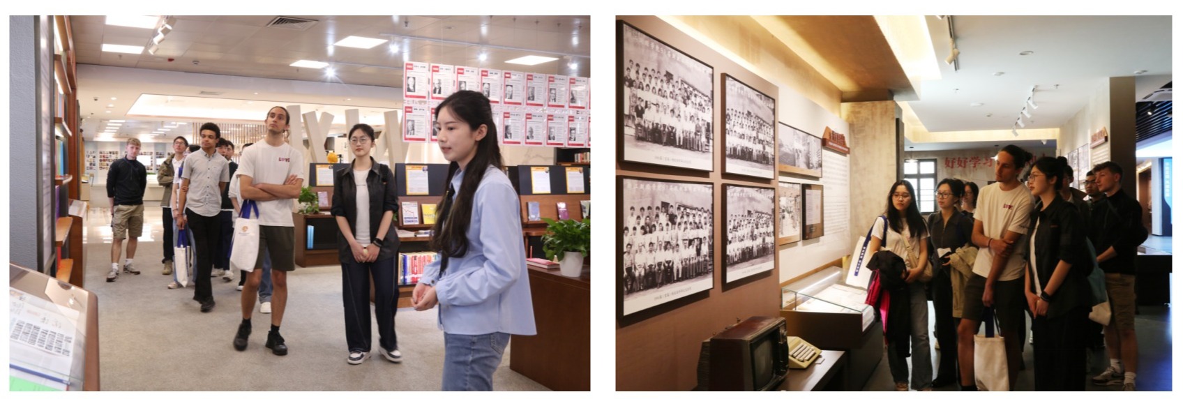 代表团首站访问浙江财经大学校史馆,与学生代表共同追溯我校五十年办学历程,感受“明德笃学,经邦济世”的精神。随后,师生们参观了我校孙冶方经济科学奖文献馆、诺贝尔经济学奖文献馆,通过珍贵手稿、学术著作及影像资料,深入了解中外经济学领域的研究脉络与前沿成果。剑桥学子尼古拉斯赞叹到:“这些文献不仅是学术珍宝,更是人类文明的共同财富。”