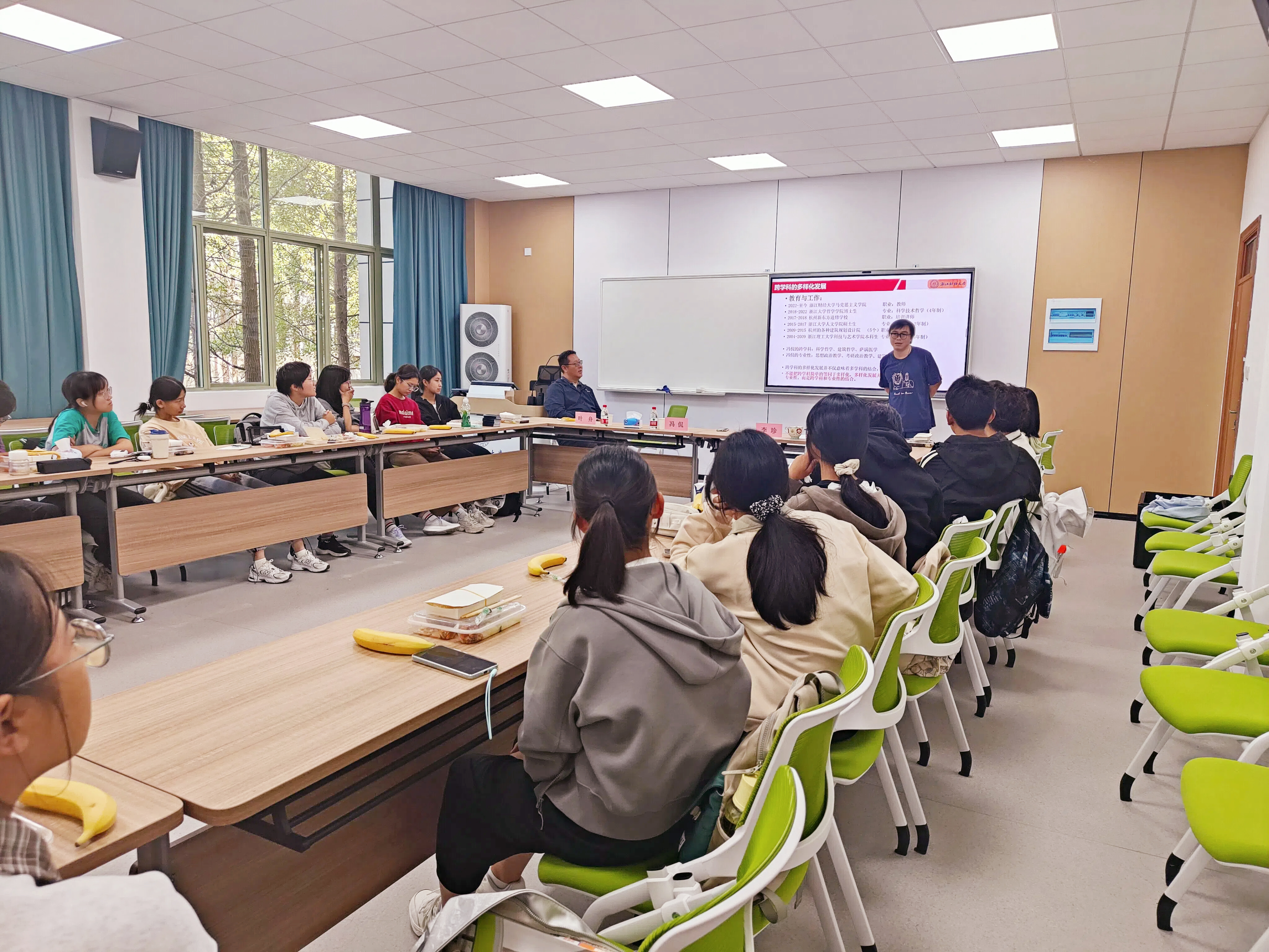 冯侃老师围绕“跨学科的多样性发展”为主题,从“多样化是现代化的基本要求”这一时代背景出发,以“身份”、“专业”、“情感”等熟悉名词为切口,说明多样性在日常生活的普遍性,进一步引出跨学科多样性发展的必然性。回顾了自身求学与就业经历,他表示,跨学科并非两个专业的简单结合,跨学科也不代表多样化,成功的多样化发展需要付出更多的努力和汗水,只有在融合的学科领域中具备充足的专业性才能驾驭“跨学科”的巨轮。冯老师结合自身在建筑哲学等跨学科领域的经历表示,跨学科和专业性是相辅相成的。跨学科能够拓展视野,以多种学科的视角能够对某些问题拥有更深刻的认识,更容易孕育出创新的种子;而专业性使人的研究更有深度、能更熟练地掌握某些学科核心理论。