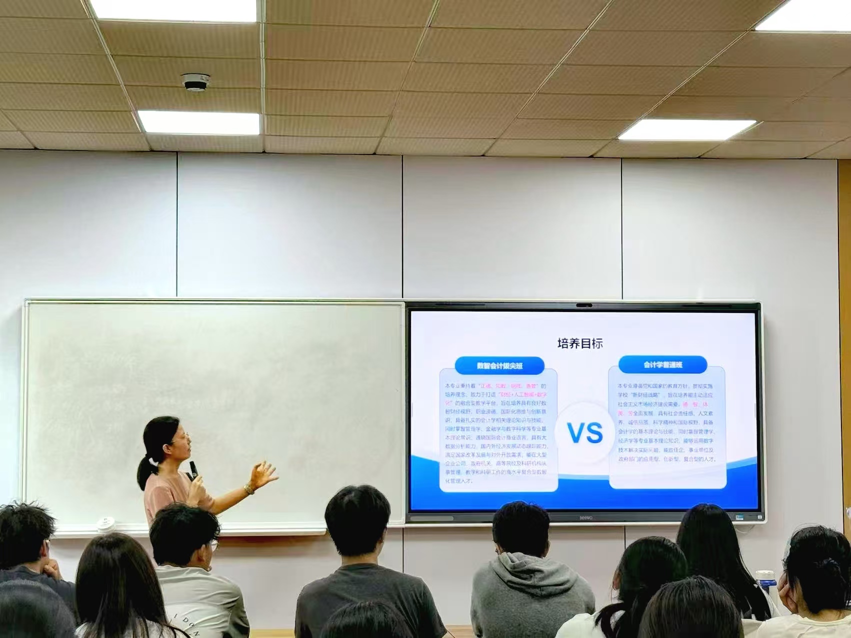 10月18日,会计学院副院长王会娟和数智会计拔尖班同学们共读培养方案。王老师强调,数智会计拔尖班是秉持“正德、知数、明技、善管”的培养理念,旨在培养具有“财经+人工智能+数字化”意识的高水平复合型国际化管理人才。随后,王老师围绕“课程学分分配”、“准入准出标准”、“创新实践”等方面为同学们解除疑惑,并嘱咐同学们及早做好学业规划,迎接挑战,实现自我价值。