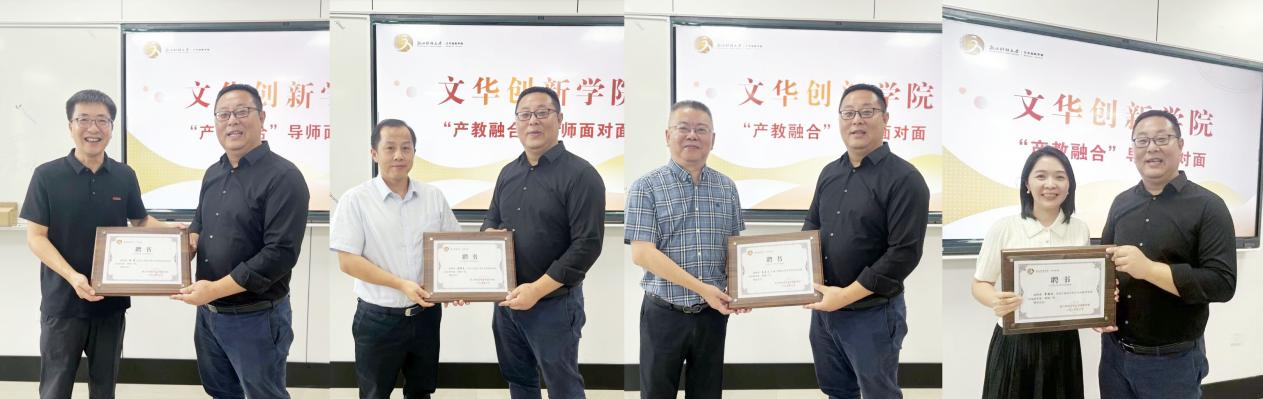 叶舟、沈晓敏给“数智会计”“数智法学”“智能金融”三个项目实践专家颁发聘书。