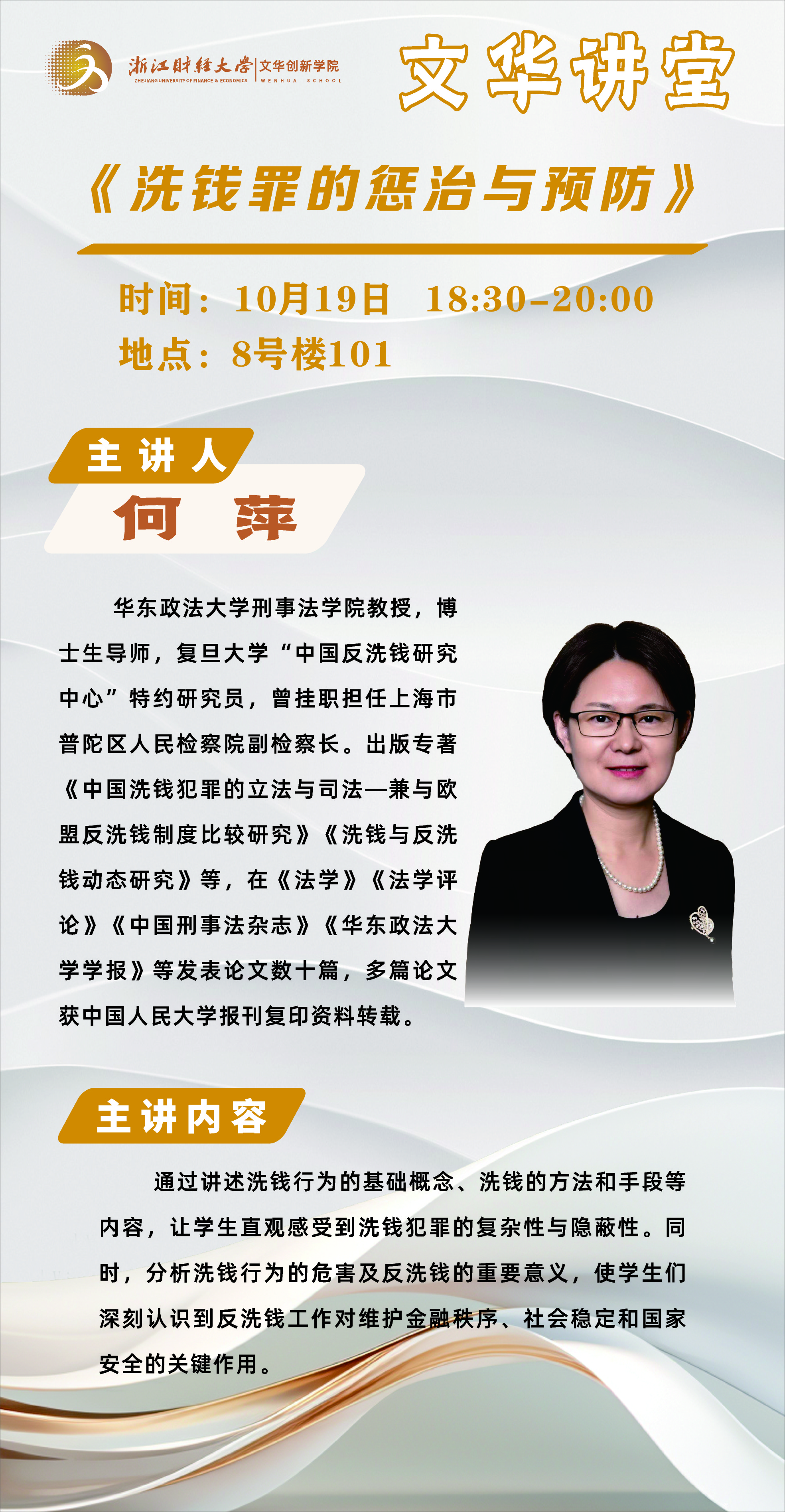 文华讲堂讲座预告:《洗钱罪的惩治与预防》