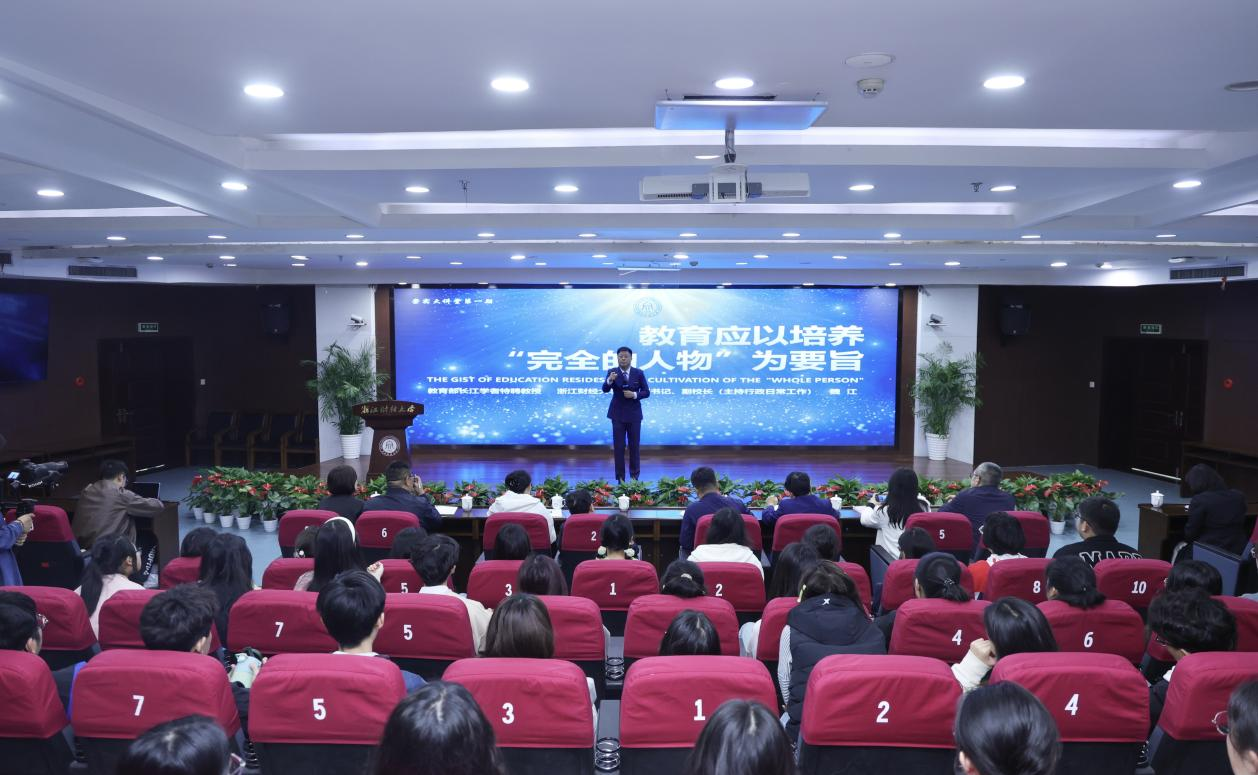 学校学术第四报告厅师生济济一堂,掌声阵阵,校党委副书记、副校长(主持行政日常工作)、文华创新学院院长魏江,为300余名师生作《教育应以培养“完全的人物”为要旨》讲座。
